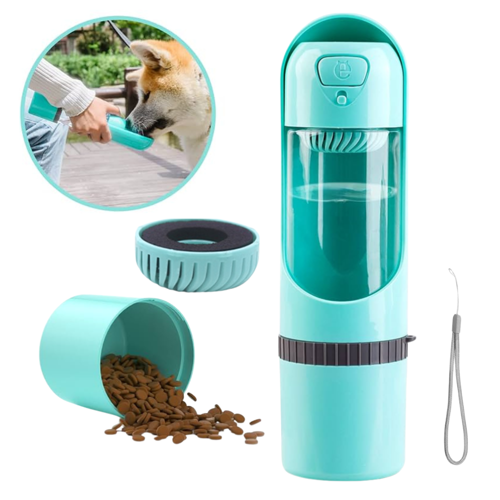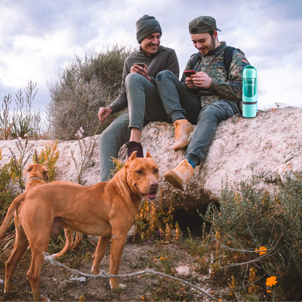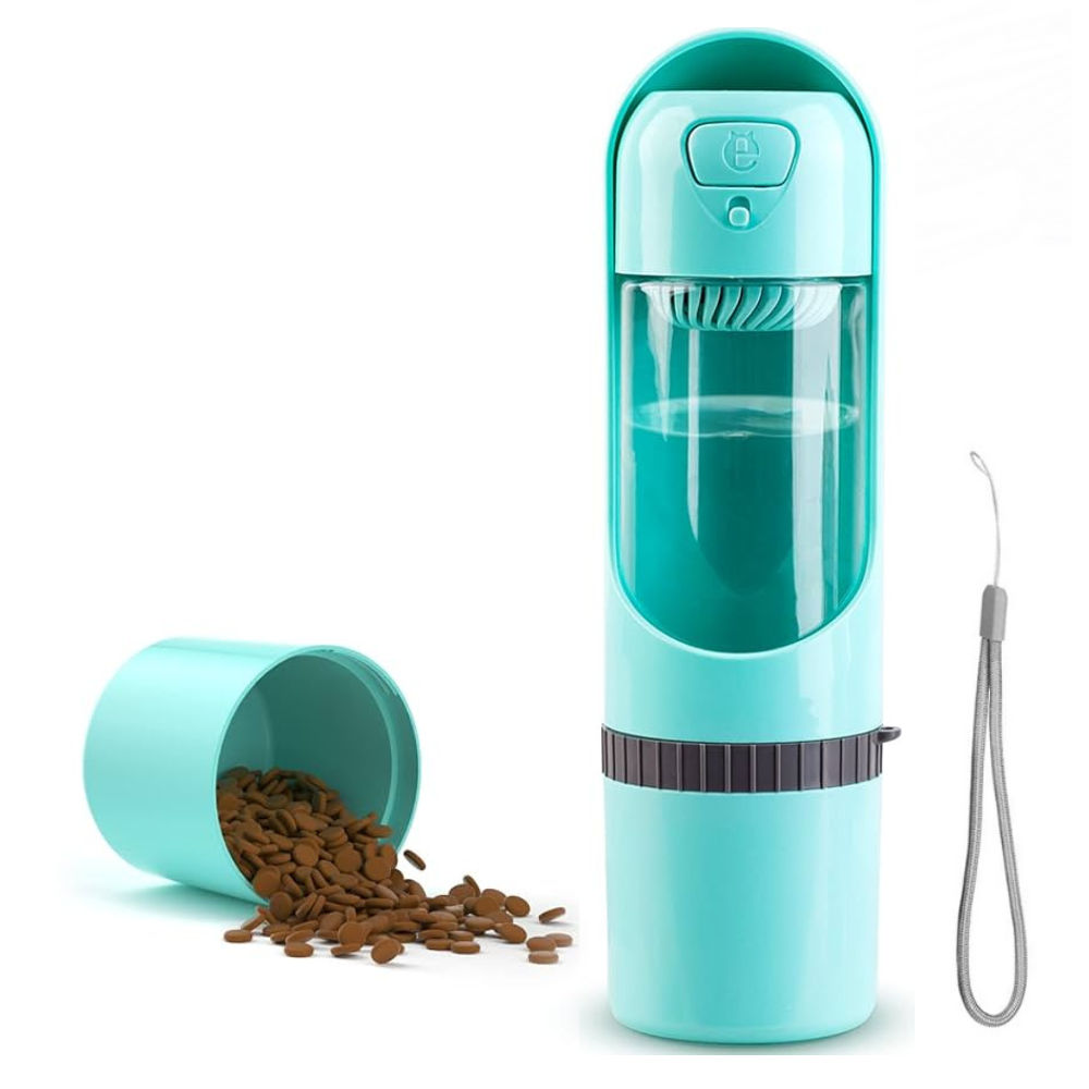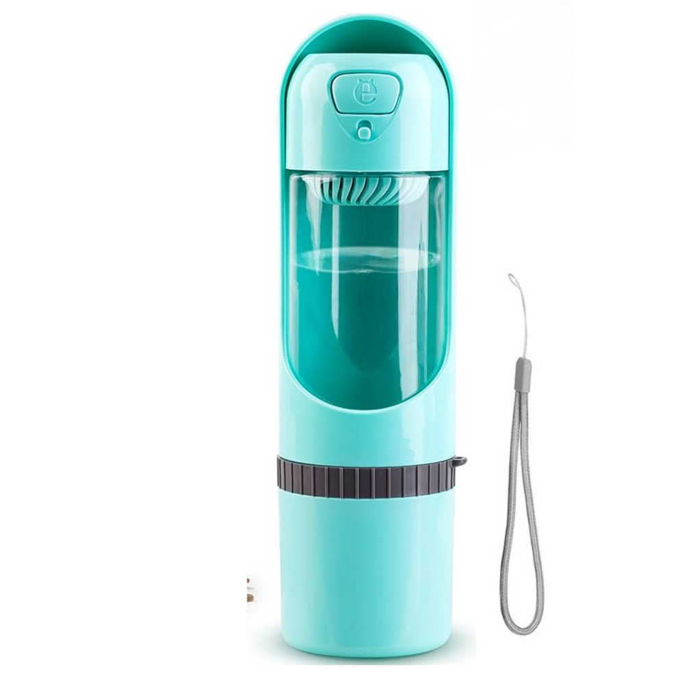 - Butelka jest idealna dla psa podczas podróży, spacerów i wędrówek, dzięki niej masz zawsze świeżą wodą i przysmaki lub karmę dla swojego zwierzaka