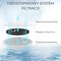 - Butelka posiada filtr wymienny o trzystopniowym systemie filtracji (warstwa bawełny, warstwa węgla aktywnego, warstwa bawełny), który usuwa zanieczyszczenia, nieprzyjemny smak i zapach, utrzymując świeżość wody, dzięki czemu jest ona zawsze czysta i smaczna