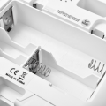 - Podajnik zasilany jest przez kabel USB, jak również posiada dodatkowe zasilanie za pomocą baterii, żeby nie zaburzyć harmonogramu posiłków w przypadku wyłączenia prądu