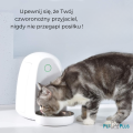 - Podajnik posiada pojemnik na karmę o pojemność 2 l, zaprojektowany z myślą o małych psach i kotach