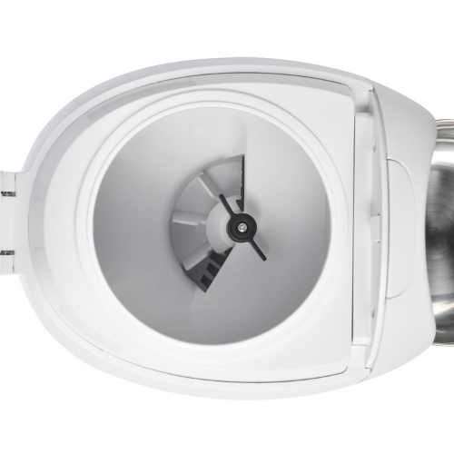 - Podajnik jest łatwy do czyszczenia – wyjmowana miska, wykonana ze stali nierdzewnej, może być myta w zmywarce na górnej półce