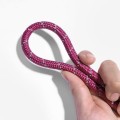 - Materiał: wysokiej jakości pleciona nylonowa lina, miękka pętla na szyję powlekana pianką neoprenową, uchwyt wykonany z mocnego materiału nylonowego