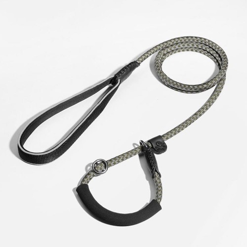 Smycz pleciona nylonowa z zaciskową obrożą (2 w 1). Nie wymaga osobnego obroży, szelek ani uprzęży. Idealna do nauki chodzenia na smyczy dla psów ras średnich i dużych.