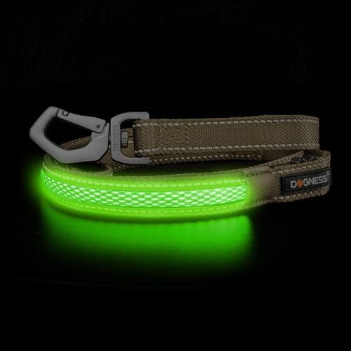 Smycz odblaskowa z LED DOGNESS taśma do 30 kg (M/L) brązowa