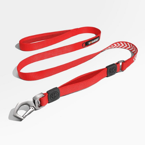 Smycz odblaskowa z podwójnym uchwytem DOGNESS taśma 152 cm do 10 kg (XS/S) czerwona