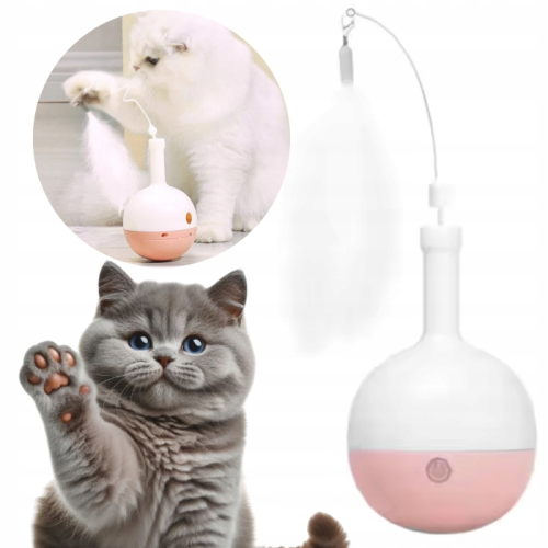 Zabawka interaktywna z piórkiem i dozownikiem karmy lub przysmaków ruchoma dla kota