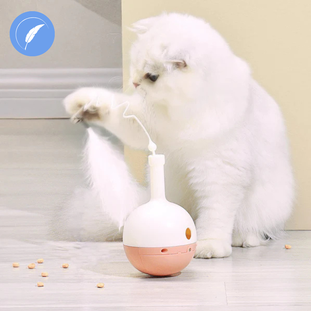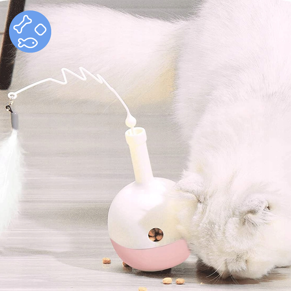 Chciałbyś spędzać ze swoim zwierzakiem jak najwięcej czasu, ale kiedy nie jest to możliwe i gdy Twój pupil zostaje sam w domu, możesz uprzyjemnić mu ten czas dzięki interaktywnej zabawce z piórkiem i dozownikiem przysmaków.