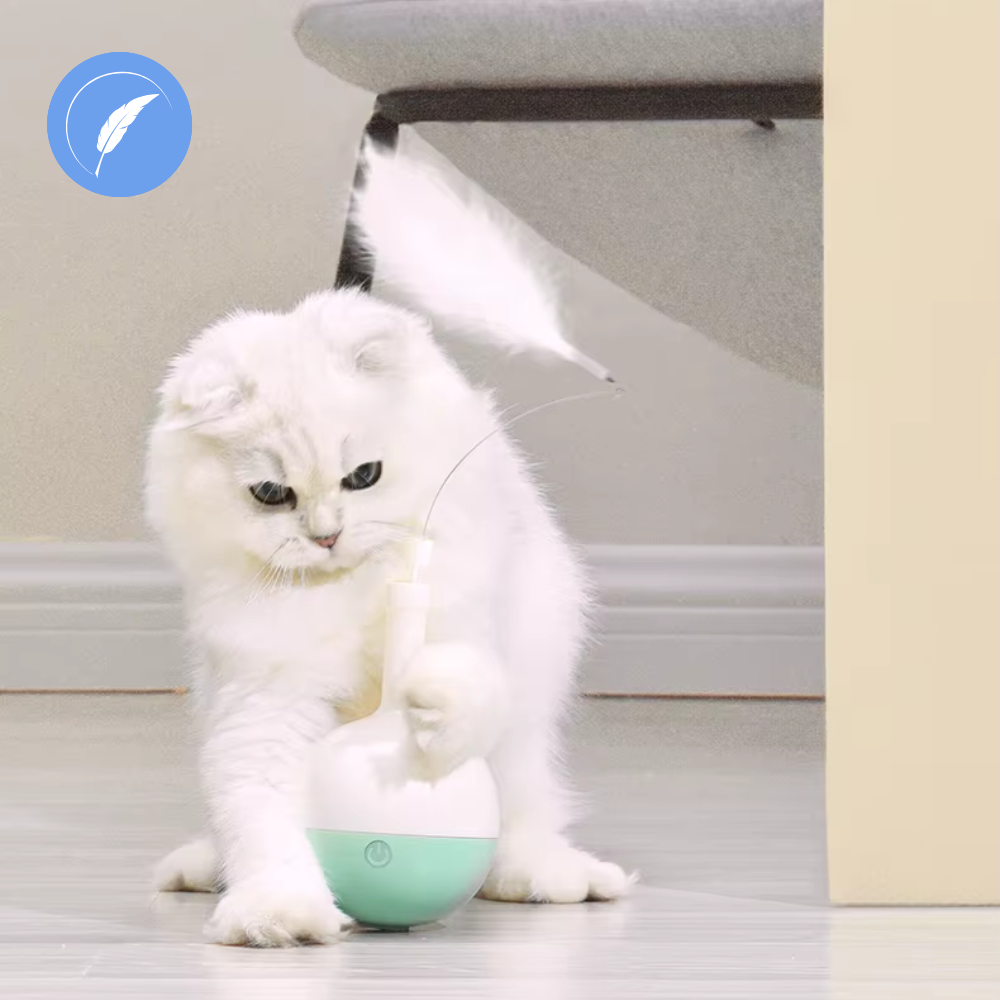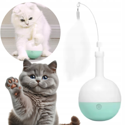 Zabawka interaktywna z piórkiem i dozownikiem karmy lub przysmaków ruchoma dla kota