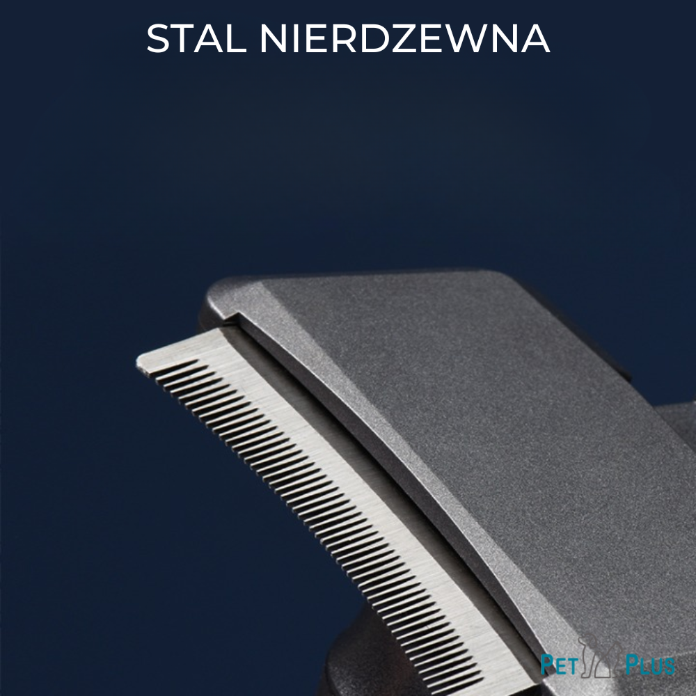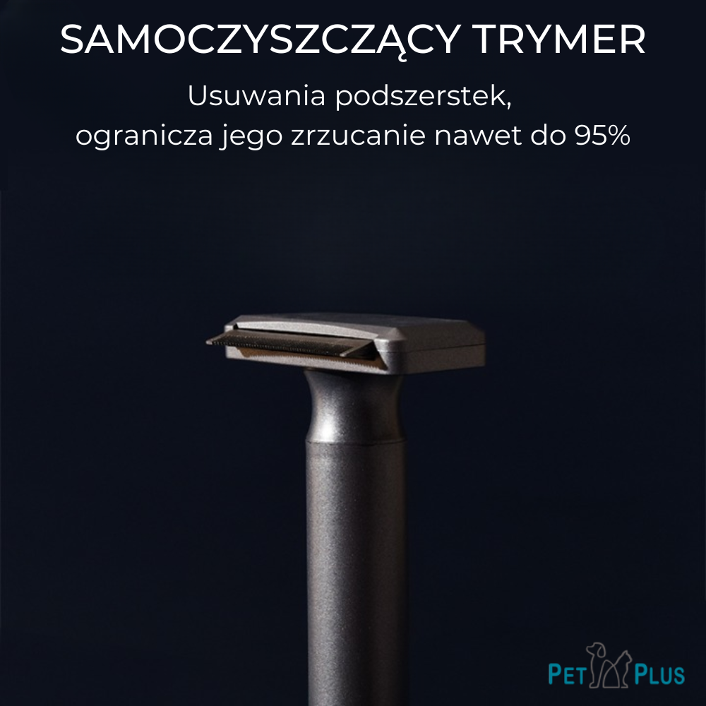 - Samoczyszczący trymer (furminator) - grzebień do usuwania podszerstka, ogranicza jego zrzucanie nawet do 95%, sięga pod okrywę włosową zwierzęcia i delikatnie usuwa podszerstek