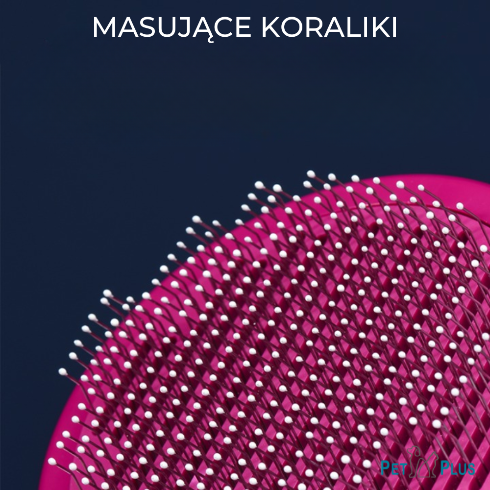 - Samoczyszcząca szczotka ze szpilkami zakończonymi koralikami - usuwa luźne włosy, rozczesuje kołtuny i wyciąga martwy podszerstek