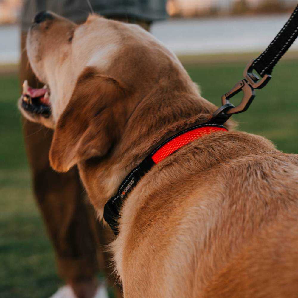 Zestaw obroża odblaskowa z LED taśma 55 - 70 cm (XL) + smycz odblaskowa z LED (XL) DOGNESS
