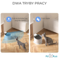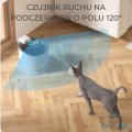 - Fontanna posiada czujniki ruch na podczerwień o polu 120°, który uruchamia pompkę, gdy zwierzę znajduje się w odległości 20 cm od urządzenia, pompka zatrzymuje się po 30 sekundach gdy zwierzak znajdzie się poza zasięgiem