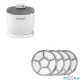 - Zestaw: Fontanna automatyczna z czujnikiem ruchu 2,5 l + ładowarka USB z przewodem zasilającym + filtr (1 szt.) + opakowanie filtrów (3 szt.)
